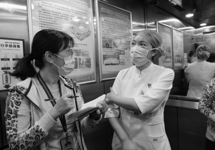查房总结会还没开完,唐珊就接到了一个电话,是医院药房打来的,通知她带领神经内科二病区16床病人王刚(化名)的妈妈去领药。放下电话,唐珊快速给护士们安排好当天的工作,在护理台内帮忙把所需药物整理好,然后一边给维修厂家打电话安排仪器维修,一边朝电梯口走去。