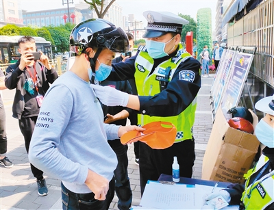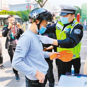 西安市公安局交警支队民警建议,市民在购买头盔时,安全性尤为重要,“在购买时,通过查看、挤压、敲击的方式筛选头盔,符合我国3C认证标准的头盔最好”。