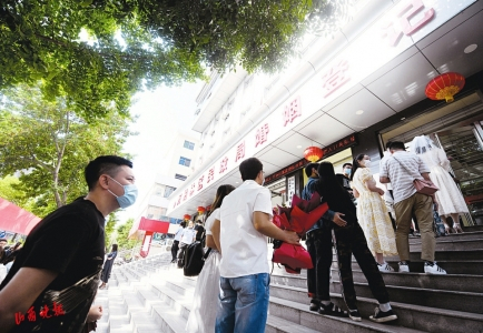 此外,记者了解到,当日,万柏林区预约登记办证的新人有200多对,是平时的10倍。婚姻登记处增设办理窗口,临时增加工作人员,上午提前一个小时到岗,下午延后一个小时下班,为所有预约的新人办理完结婚登记手续。