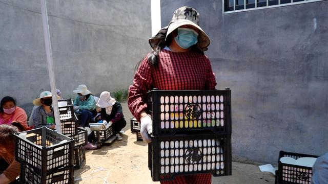 武妍彦决定租车下乡收梨,五菱之光的小货卡,司机开车,她抱着孩子坐在副驾。都是乡里乡亲,大都可以先卖梨,再收钱,有保守的果农,看到邻居卖掉果子拿到款,也愿意把自家的梨装进快递纸箱。