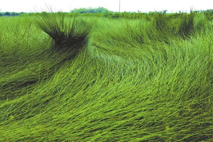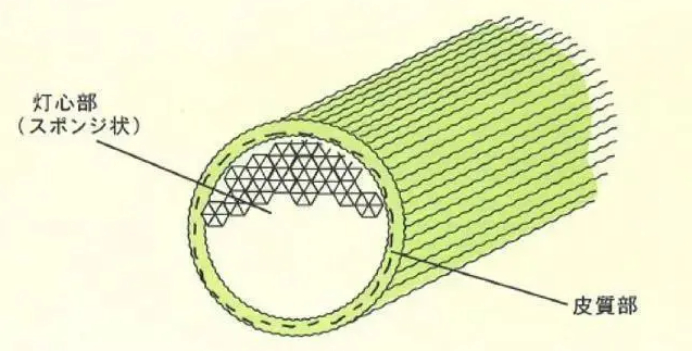 蔺草有着特别的“中空”结构:外层凹凸不平,里面的草芯部分呈海绵状,疏松有弹性。
