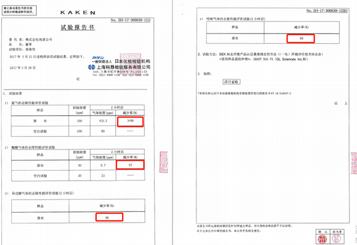 品牌曾做过实验,来检测蔺草吸附异味的能力