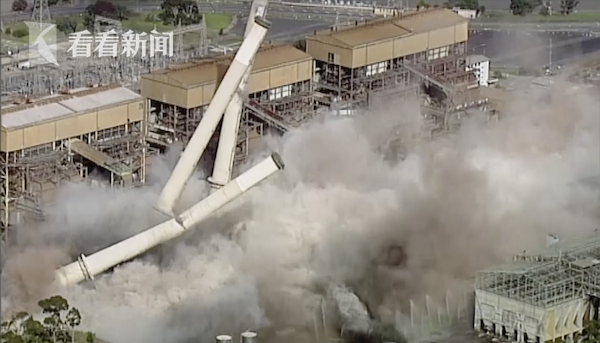 视频|澳大利亚发电厂爆破 8根烟囱如多米诺骨牌般倒下