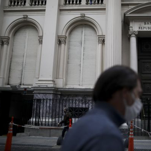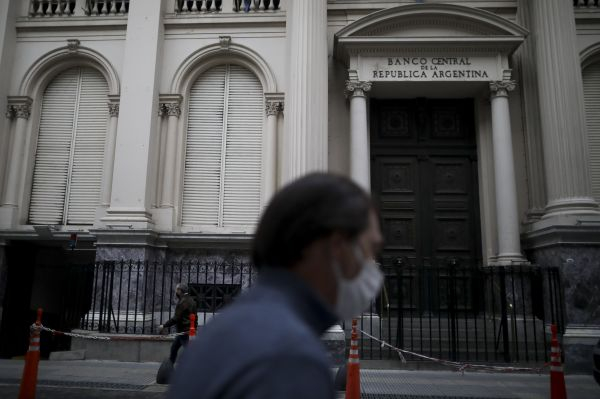 5月21日,在阿根廷布宜诺斯艾利斯,一名男子从阿根廷央行大楼前经过。(新华社/美联)
