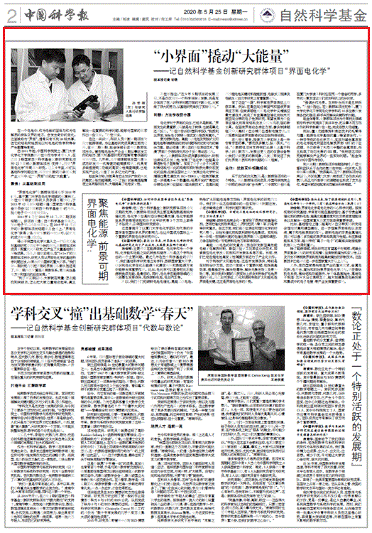中国科学报:“小界面”撬动“大能量” ——记自然科学基金创新研究群体项目“界面电化学”