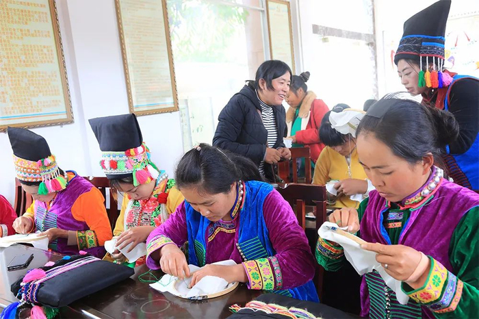 搬迁后布朗族群众学习刺绣