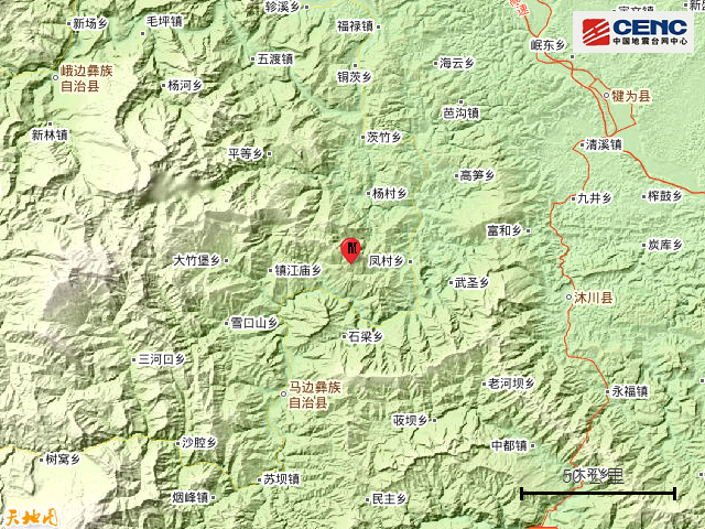 四川乐山市马边县发生3.8级地震