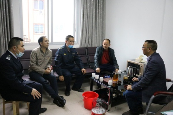 4月21日上午,永福大队负责人韦国建同志联合永福分公司领导到永福县治理超限超载办公室开展横向联系,加强和永福县政府治超办的沟通协调,共同做好高速公路免费期间入口称重劝返工作。
