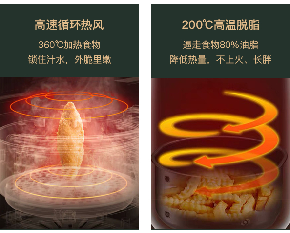 咋做到的呢,先科普一下空气炸锅的原理——顾名思义,就是用“高温空气”代替原本油锅里的热油,把食物炸熟。