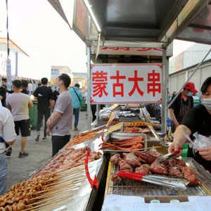 中新网济南5月26日电 (孙宏瑗)菜煎饼、烤冷面、螺蛳粉、炸串、烤生蚝、烤脑花、麻辣烫……5月26日晚,在济南环联商贸城夜市入口处,众多摊主驾驶上百辆满载着各种食材、炊具、百货商品等的三轮车,有序排队入场,场面壮观。
