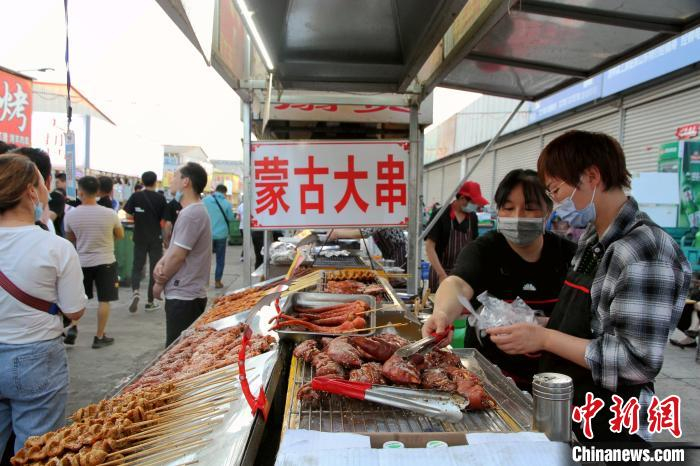 5月26日晚,在济南环联商贸城夜市,市民在小吃摊大饱口福。随着疫情防控进入常态化,济南夜经济逐渐恢复。 孙宏瑗 摄