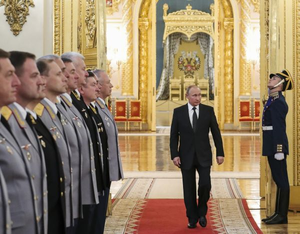 2018年5月31日,俄总统普京(中)在克里姆林宫接见国家安全部门负责人。(美联社)