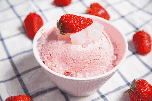 加点草莓,奶茶混合冰块,来碗草莓味的水果奶茶冰沙!自制DIY度过这个炎炎夏日~