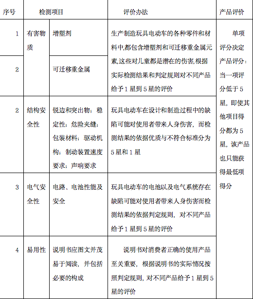 结果显示,没玩没了(JE1166)、贝瑞佳(JE1198)、好孩子、大可(DK-F150)、贝瑞佳(JJ263)等6个型号的玩具电动车获得了5星。同时,也有8款产品存在增塑剂含量超标问题。增塑剂是生产加工中常用于的改性助剂,而邻苯二甲酸脂是增塑剂的一种,当其超标时可能会对经常接触的儿童造成伤害,如抑制免疫系统功能、影响细胞活性、易导致基因突变、造成发育和生殖障碍、畸形和死亡等,应当引起消费者和生产商重视。2款产品存在活动间隙问题,由于儿童身体骨骼发育不完全,并且活泼好动,危险的间隙可能陷入儿童的手指并造成挤夹伤害。另外1款产品存在电池存在短路风险,消费者可能受到意外伤害。1款产品缺少说明书,消费者可能无法正确使用产品。