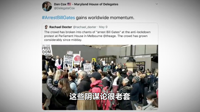 一位自称“科学家”的人说道,疫情是大富豪比尔·盖茨和科学家福奇联手炮制的阴谋,准备借机夺权,控制世界。