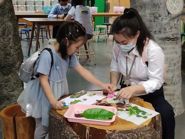 展区参观结束后,小朋友和家长们来到了探索中心教室,在博物馆科学老师的带领下分别体验了《叶子真奇妙》及《我为甲虫狂》两项“自然趣玩屋”动手做活动,通过创意涂绘、植物拼贴画、甲虫工坊等亲子互动体验活动,共同探秘动植物丰富多彩的外形特征,同时通过在动手做中启发幼儿自由发挥创意,培养其手脑配合能力。活动体验结束后,小朋友们还收到了《自然趣玩屋》赠书,将科普读物带回家,继续酷玩自然。