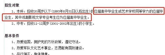 据了解,仝卓于2013年考入中戏。每经记者在翻阅军艺当年(2013年)的招生简章时看到,该校本科招生对象专门对“应届生”身份进行了严格要求。
