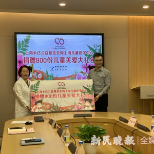 新民晚报讯(记者 宋宁华)2岁的婷婷(化名)患有先天性心脏病,为了给她治病,家人带着她从外地到上海儿童医学中心动手术。就在她即将康复出院的时候,一份意外的礼物让她开心不已。原来,“六一”儿童节前夕,为关爱儿童在特殊时期的身体健康,今天,上海永达公益基金会向儿童医学中心捐赠了800份“儿童关爱大礼包”,里面包括儿童口罩、毛绒玩具等,实用又暖心。