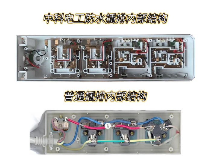 插排真的“不怕”水!中科电工防水安全结构填补了插排安全隐患无法解决的空白。