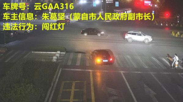 原标题:云南蒙自曝光公职人员车辆违章:副市长的车闯红灯