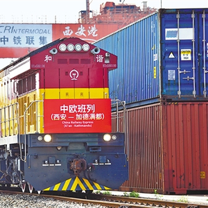 5月22日,陕西首趟开往南亚国家的货运班列,从西安新筑车站出发,驶向尼泊尔加德满都。唐振江摄(中经视觉)