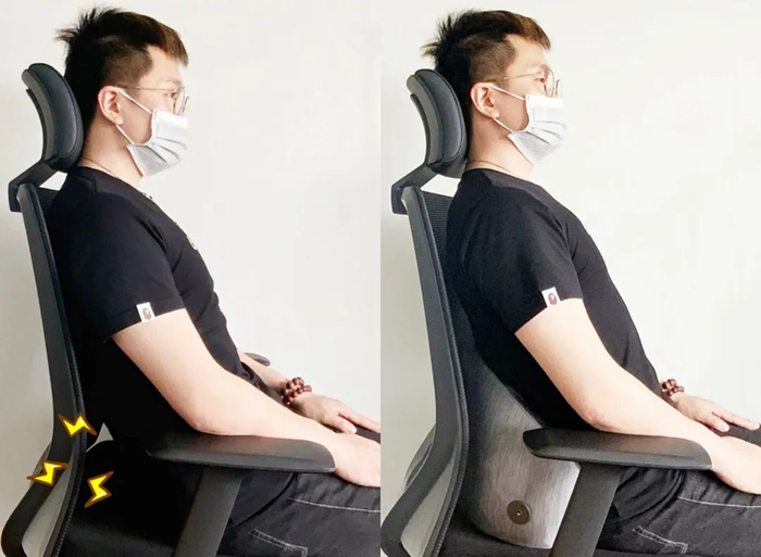 靠下去,腰椎压力瞬间释放,承托维持“S”型的正常脊椎生理曲线,舒适不硌腰~