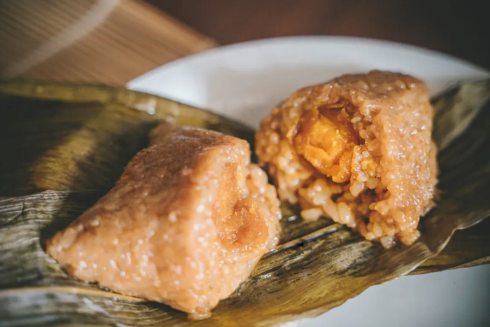 蛋黄肉粽,则是鲜肉粽的升级版,双重美味暴击。