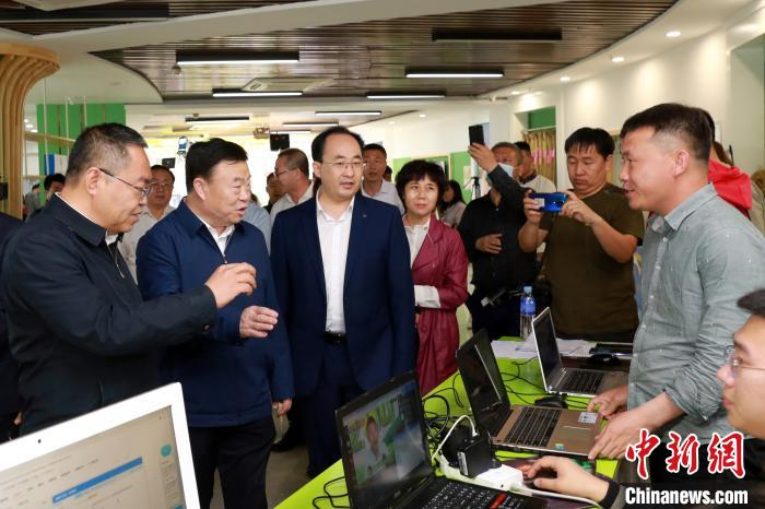图为内蒙古自治区党委常委、盟委书记张恩惠在首届电商直播节兴安盟品牌专场直播现场看望直播幕后工作者。 宝音 摄