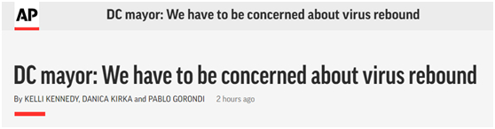 美联社5月31日报道称,包括美国首都华盛顿哥伦比亚特区市长缪里尔·鲍泽、马里兰州州长拉里·霍根,不少人开始对抗议活动可能引起新一轮疫情高峰表示担心。