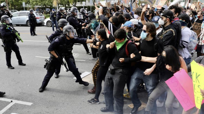 芝加哥警察局局长大卫·布朗表示,在芝加哥当地时间5月30日的示威活动中,多名警察被“投掷瓶子和碎片”,约20多名警员需就医。警方逮捕了至少240名示威者,另有6人受到枪击,其中1人死亡。