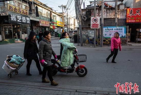 2019年12月3日下午,北京市昌平区东沙各庄村街头,结束话剧排练后,几名演员回到村里,准备各自回家、接孩子放学。