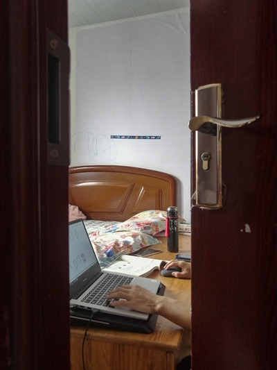 5月6日,北京市昌平区,因为疫情,原本在深圳工作的孩子爸爸只能居家办公。春分/摄