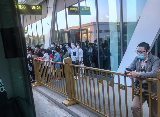 5月18日,北京,下班路上。每天通勤需要4小时左右。双双/摄(以上组图为在京务工的外地女工们在疫情期间所拍摄)