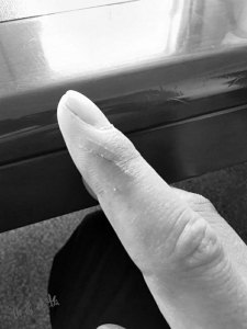 还有一次,马先生同样是在鱼缸里操作的时候,被鱼咬伤,手指上划出一道长长的鱼牙印,可以看出鱼牙非常锋利。