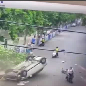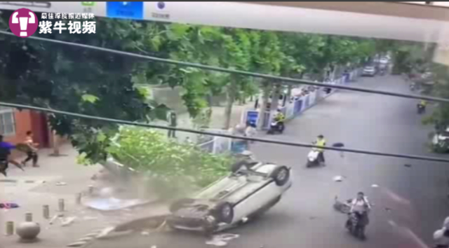 事发路段位于徐州市区黄山垄附近,该路段道路较狭窄,平时人车流较大。根据网友提供的视频,肇事白色轿车当时正从东向西行驶,该车前方有一辆自行车、两辆电动车同向正常行驶。白色轿车在行驶到自行车后方时,突然加快车速,径直驶向路边。该车先撞飞了一名骑自行车的老人,随后又撞倒两辆靠马路牙停留的电动车。在此过程中,该车车速未降低,直接骑上马路牙,撞散了一排隔离栏。直至车头撞上一棵行道树,大树被拦腰撞断,该车也翻倒在路上。