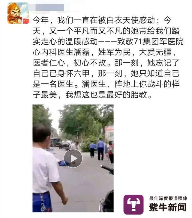 该名女医生也引发了网友们关注,有网友评论“女医生身怀六甲,却战斗在救人一线,这就是最好的‘胎教’。”4日,记者核实了解到,当事女医生叫潘磊,是第 71 集团军医院心内科主治医生,面对网友的称赞,潘医生表示自己“只是尽了医生的本分,做了一件小事”。值得一提的是,潘医生4年前就曾在南京火车站施救突发癫痫的病人。
