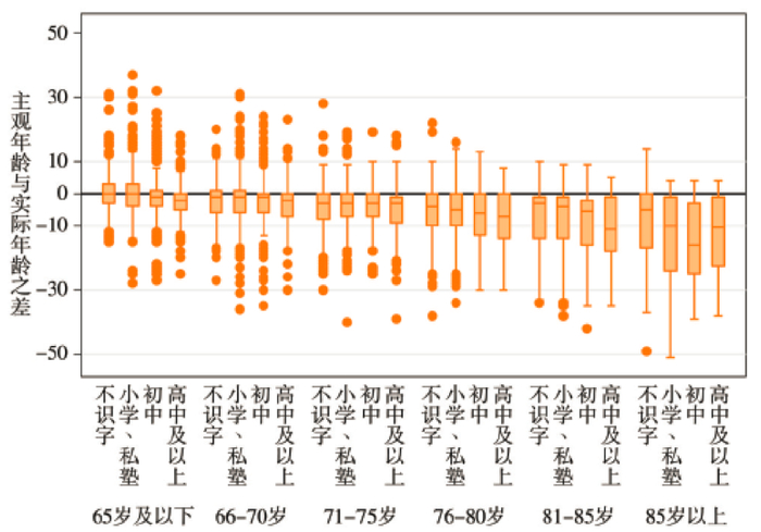 而且,这种差距在城市老年人中表现更为明显。受教育程度的差异也会使得老年人对自身年龄有不同的认知。