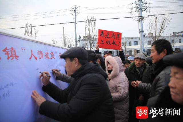 村民们纷纷在“人情减负”签名板上签名支持这一举措。