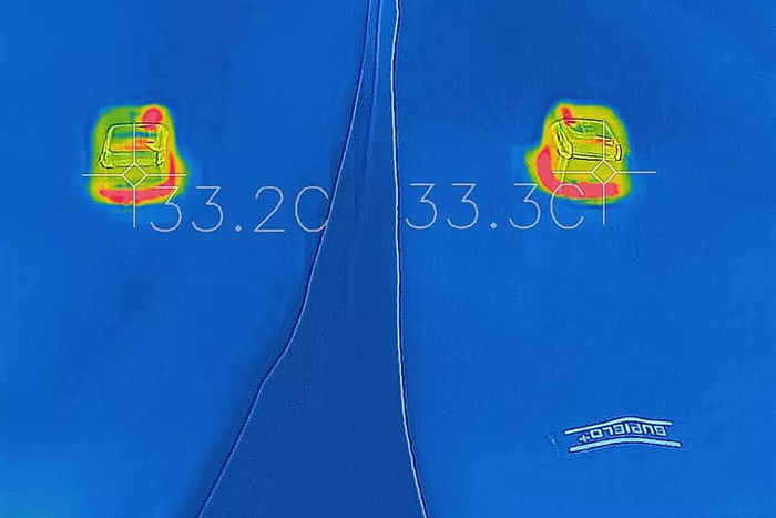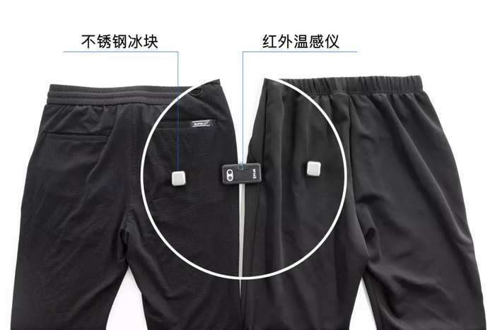 而普通裤子(右)上还能看出较清晰的手掌心热度,基本没有散热功能。