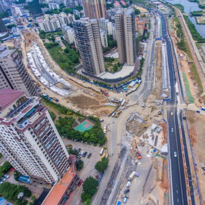 图为航拍正在施工的海口白驹大道。 骆云飞 摄