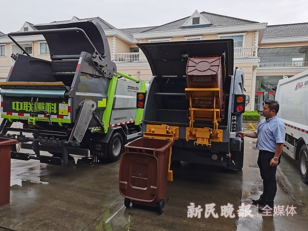 这些新型垃圾车,自去年以来已在上海虹口等区的街头穿梭。“虹口区共有垃圾收运车108 辆,其中干垃圾车62辆,湿垃圾车46辆。去年垃圾分类推行后,分类实效很好,湿垃圾含水量增多。为此,我们采购了新型车12辆用于收集湿垃圾,防滴漏效果不错。今年又有一批新车型在曲阳路街道试点。”虹口区环境卫生管理中心主任吴兴邦表示,在试用过程中,作业部门也根据实际情况提出了改进建议,比如在边缘加装软挡板,防止倾倒垃圾时污水溅出。