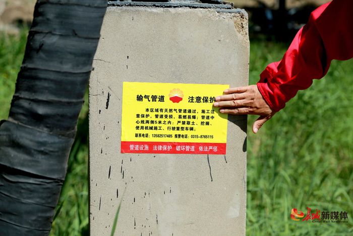 在管道跨桥及河流穿越等区域张贴宣传标识。李莉 摄