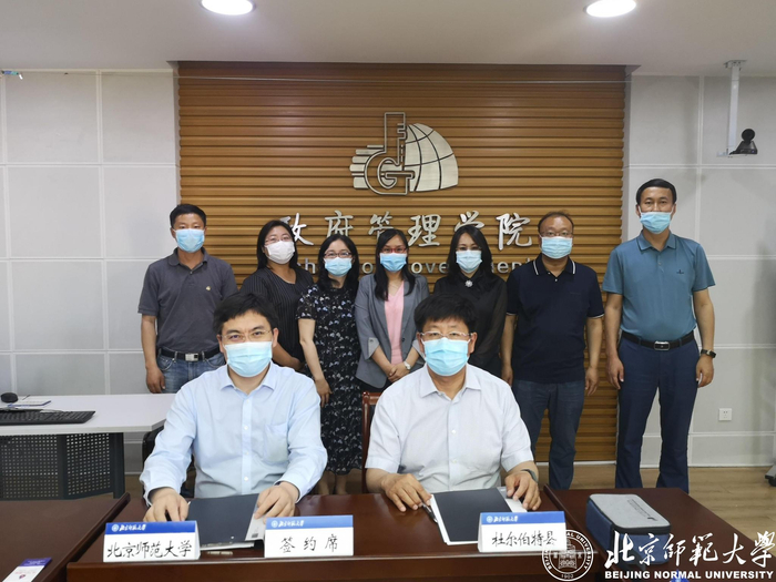 6月2日,北京师范大学政府管理学院与黑龙江省大庆市杜尔伯特县人民政府关于脱贫攻坚、乡村振兴、城乡融合和生态文明等领域的战略合作共建实习基地签约仪式在主楼举行。杜尔伯特县委副书记、县长张家文,杜尔伯特县委副书记宋玉红,杜尔伯特县政府办主任安玉源,杜尔伯特县一心乡党委书记马良,杜尔伯特县前进村驻村书记慕海军,政府管理学院党委书记于海波,副院长果佳,党委副书记郭智芳,工会主席、学术委员会副主席黄崑,团委书记褚思佳出席签约仪式。郭智芳主持签约仪式。