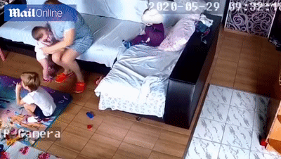监控显示,为了不让亚历西亚哭闹,苏哈诺娃用一个枕头绑在孩子的脑袋上,然后哄孩子入睡。过了没多久,苏哈诺娃去查看时,孩子已停止了呼吸。随后,她电话通知了孩子家长。