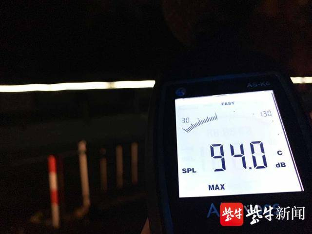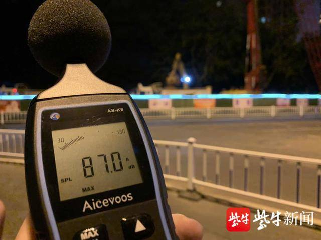 随着测试仪指针不断跳动,尖锐的金属声在夜间传来听的人心惊肉跳。而距离施工地点最近的一栋居民楼,直线距离也不超过30米,若是中间层楼,没有树木的遮挡可能感受到的噪音会更吵。