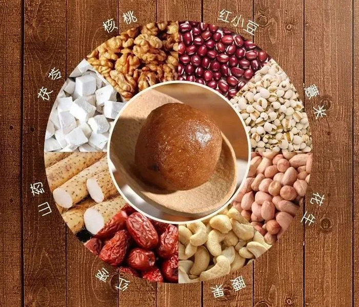 丸子中另外加入了核桃、花生、红枣,积食少了,人看上去面若桃花,红润有光泽。