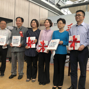 图说:首发式上,主办方向上海抗疫医护人员代表赠书。江跃中 摄