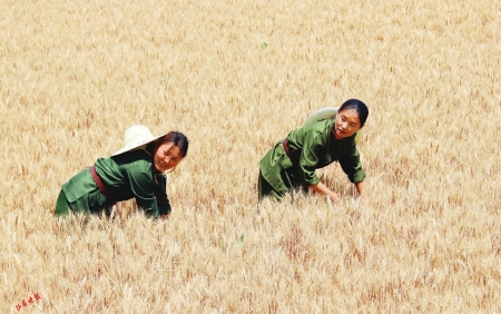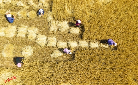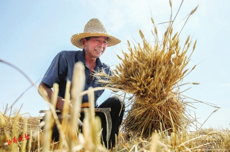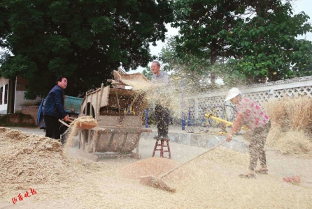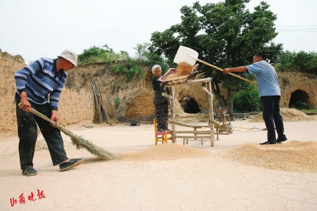 1.垣曲县麦农用掠收小麦。