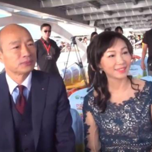 韩国瑜和夫人于2018年12月25日乘船前往就职典礼现场(联合新闻网)