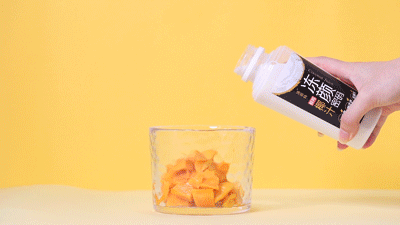 将喜欢的水果洗净、削皮、切块,潇洒地倒入碗中,再从冰箱里取出早已冰好的洛菲特冻颜密码鲜榨椰汁,豪迈地浇在水果上,甜蜜浓郁的椰香,混合酸甜可口的水果,是满足感爆棚的感觉!